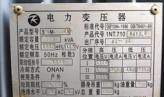 S11-M-800/6转让电力变压器