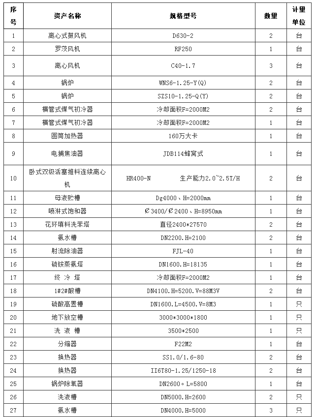 萍乡萍钢安源钢铁有限公司现有焦化回收系统、脱硫系统闲置设备欲对外竞标让售,报名时间:2017年3月15日至3月31日